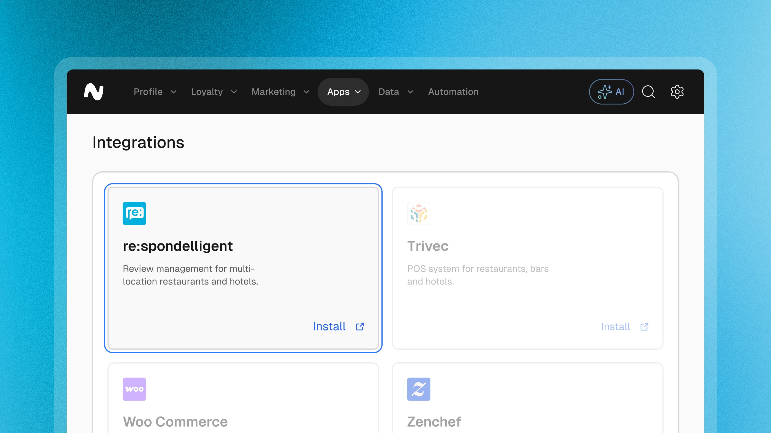 Re:spondelligent is an AI-powered reputation management platform built for multi-location hospitality. Combined with Leat, it turns guest feedback into a driver for loyalty, allowing brands to automate review responses and link guest sentiment directly to their unified loyalty profiles.