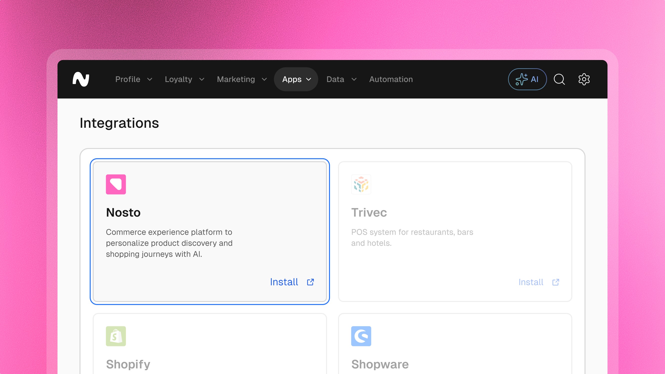 Nosto is an ecommerce personalization platform that helps online retailers deliver personalized shopping experiences across their website and marketing channels. The software uses customer data and AI to tailor product recommendations content and offers in real time based on shopper behavior. By improving relevance and customer engagement Nosto helps brands increase conversions boost average order value and drive customer retention while making ecommerce experiences more dynamic and data driven.